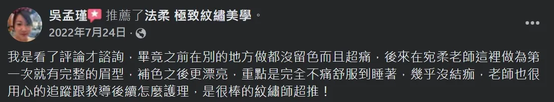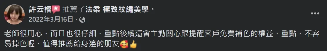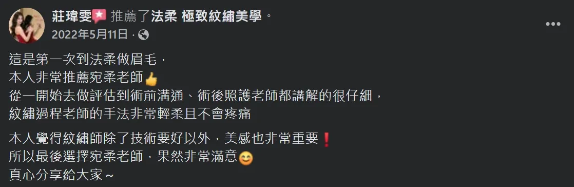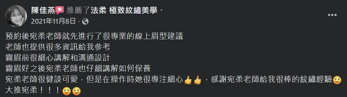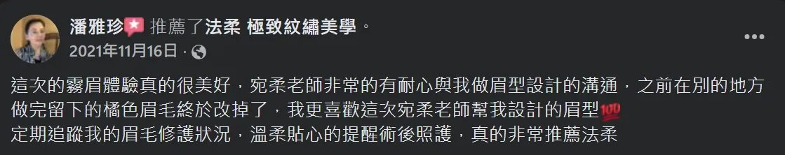 在宛柔老師這裡做為第一次就有完整的眉型
